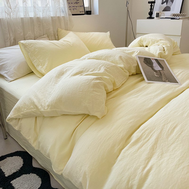 Four-piece Bed Set Solid Color Sanding Washed Cotton Duvet Cover