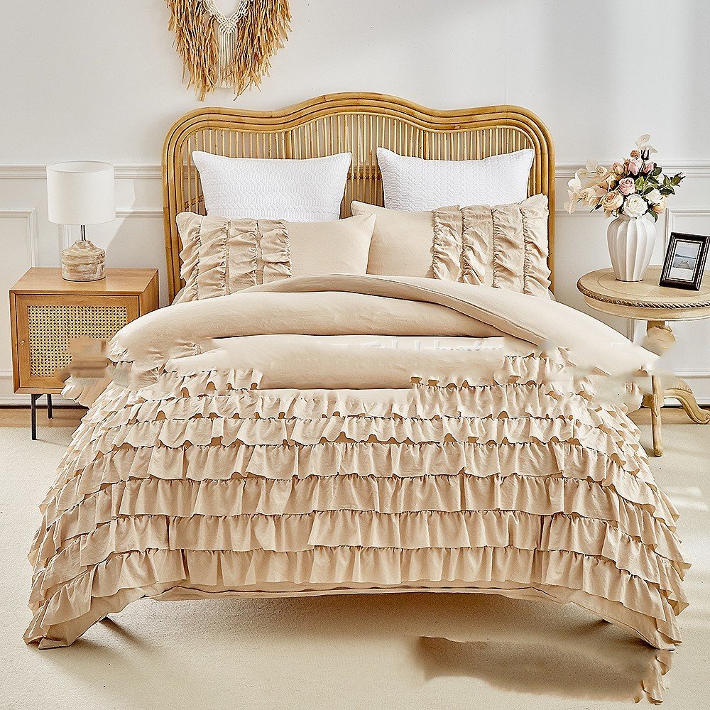 Bedding Ruffled Solid Color Princess Floral Duvet Cover Kit