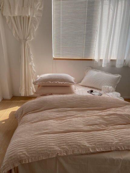 All Cotton Washed Bed Four-piece Ruffled Quilt Cover