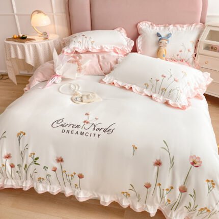 Four-piece Embroidered Quilt Cover For Washed Cotton Bed