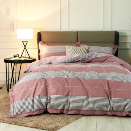 Pure Color Washed Cotton Four-piece Set Of Plaid Striped Sheets Quilt Cover Bedding