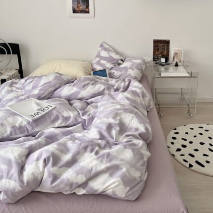 Simple Cloud Bed Sheet Quilt Cover All Cotton Washed Cotton Four-piece Set