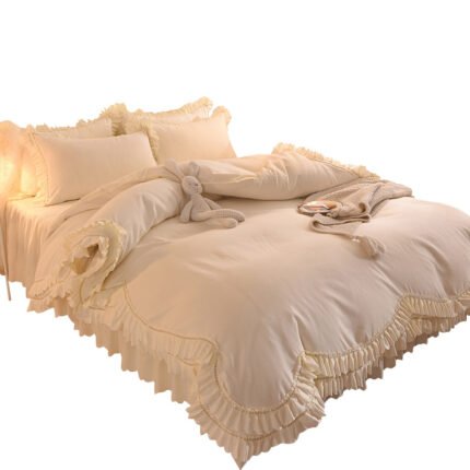 Light Luxury Nude Sleeping Princess Style Four-piece Lotus Leaf Lace Double Bed Sheet Duvet Cover With Bed Skirt Girl Solid Color Bed