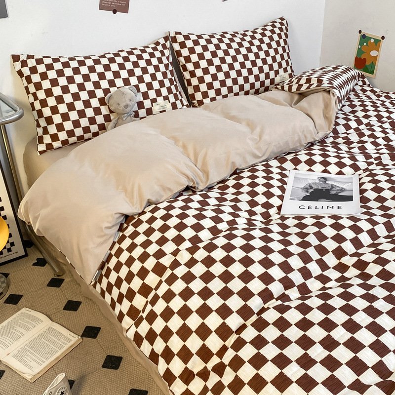 Solid Color Four-piece Set Simple Washed Sanding Duvet Cover