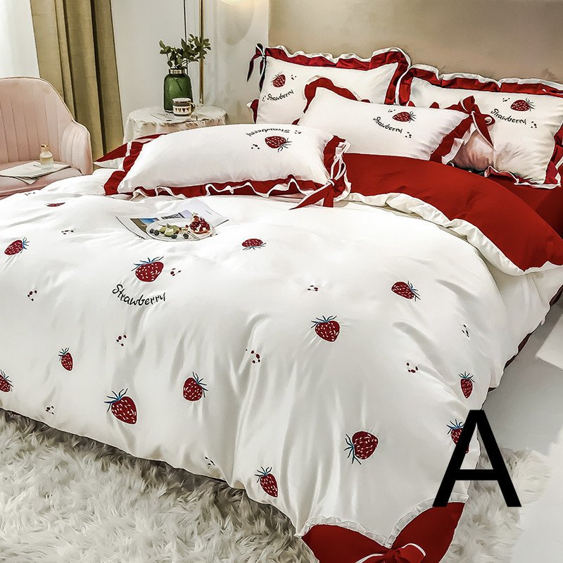Strawberry Embroidery Cotton Four-Piece Cotton Bedding Silk Duvet Cover