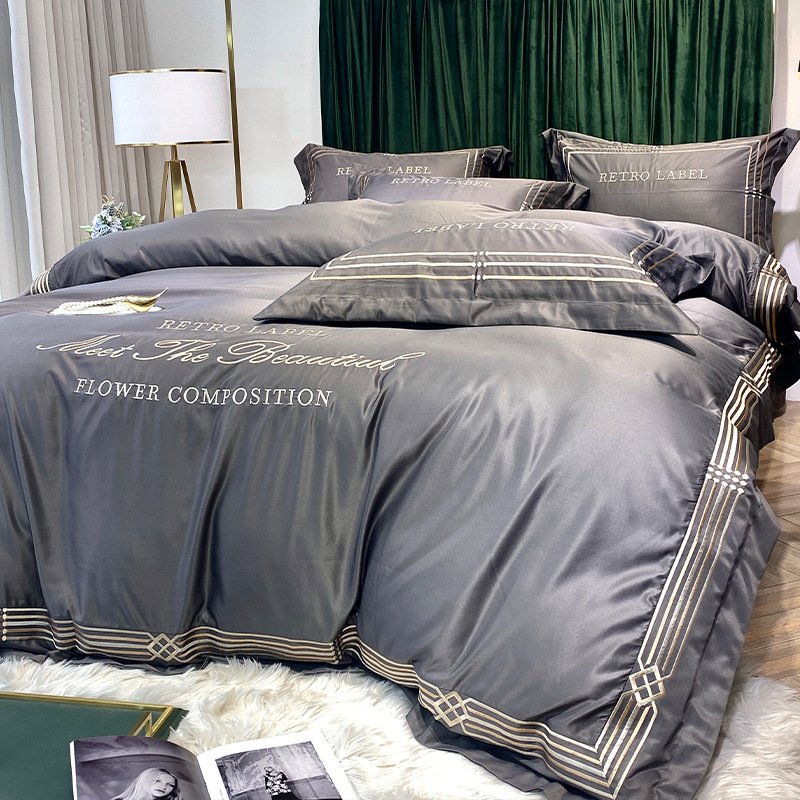 Tencel Quilt Cover Embroidered European Washed Cotton Four-piece Set
