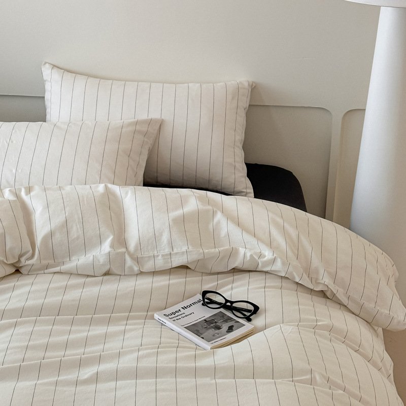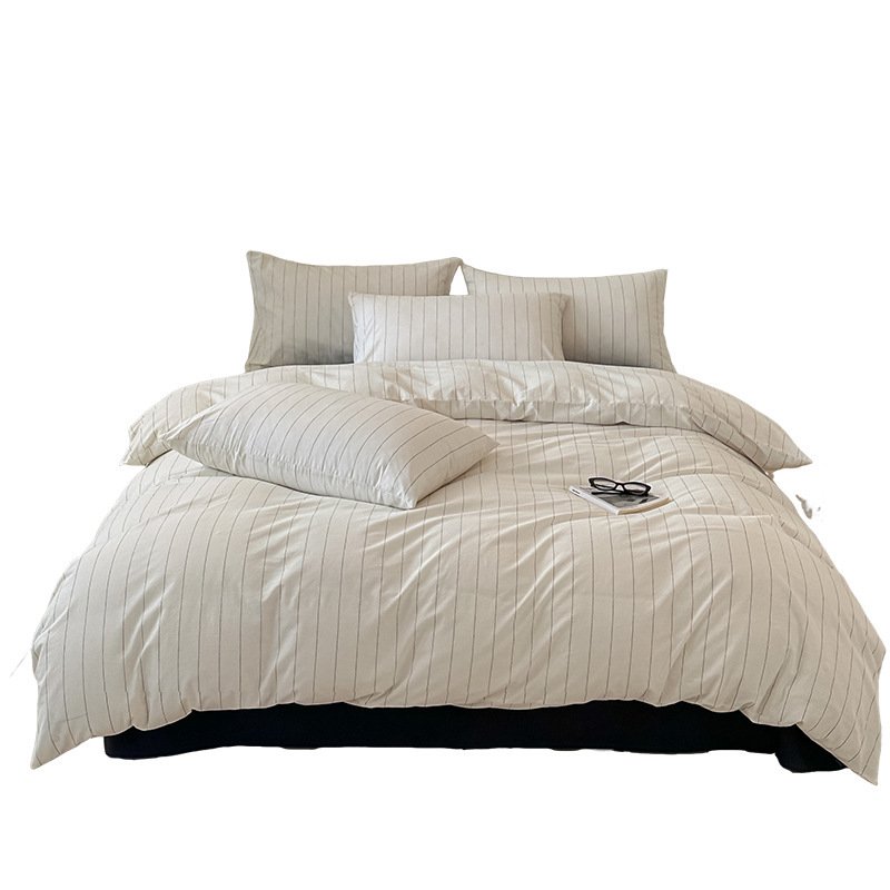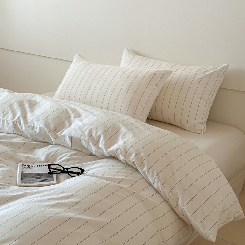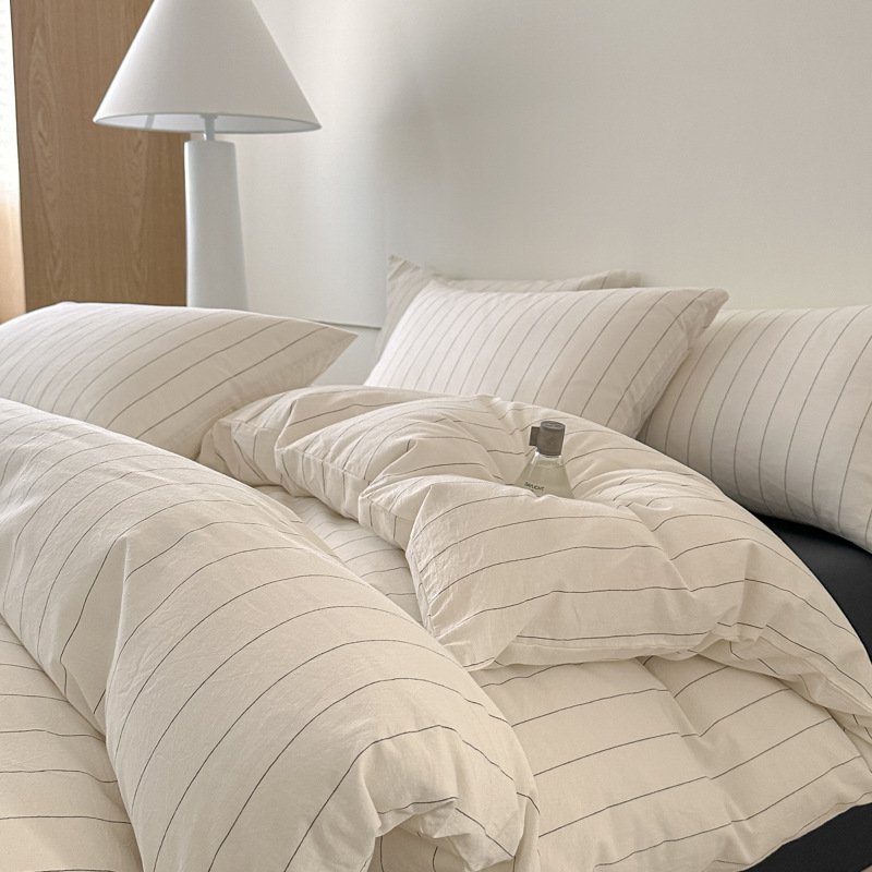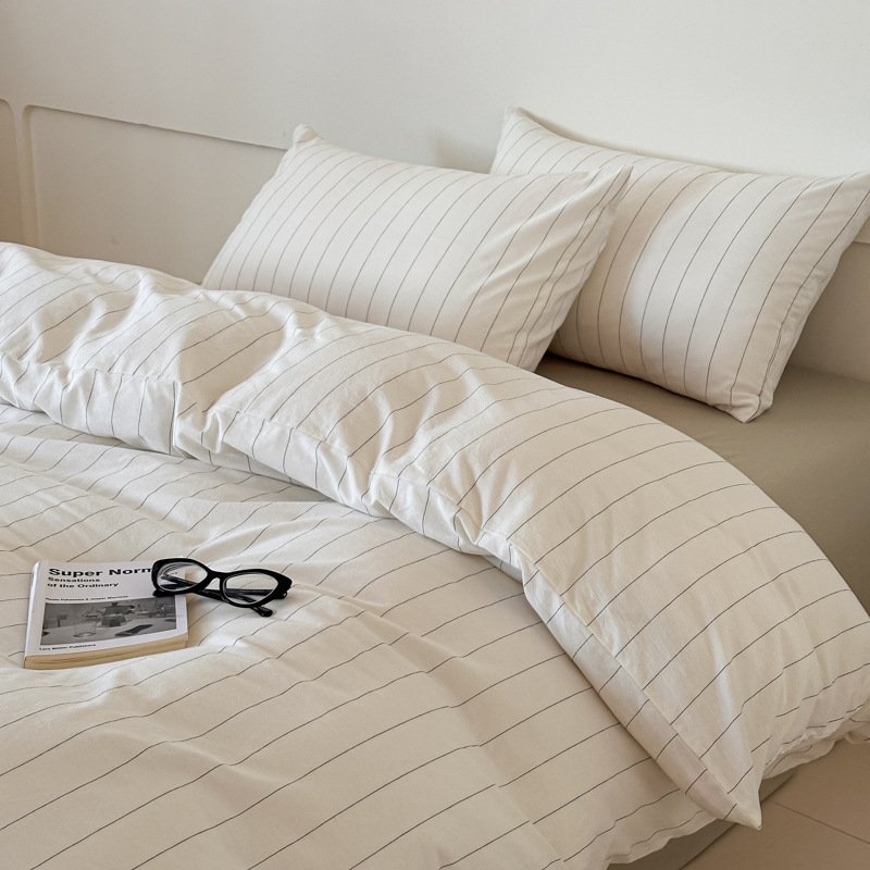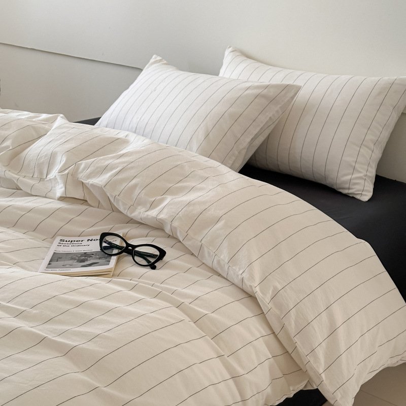 Washed Cotton Striped Quilt Cover Bed Sheet Bedding